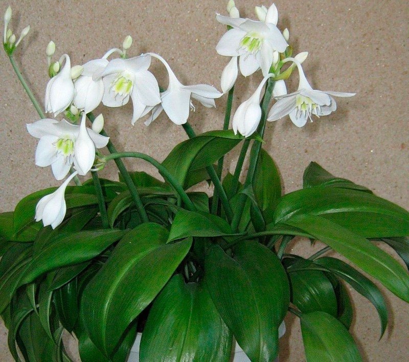 Изящная амазонская лилия, как еще называют эухарис — одно из самых нежных и ароматных комнатных растений. Его изысканный аромат ни с чем не сравним. Такое ощущение, что наслаждаешься благоуханием букета тропических цветов.