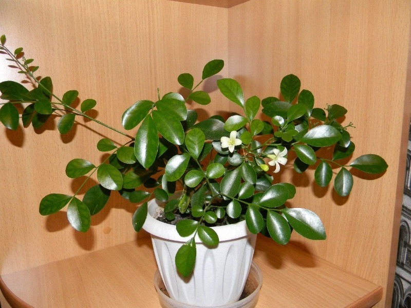 Этот великолепный экзотический цветок имеет очень сильный аромат. Он остается вечнозеленым круглый год. В домашних условиях может цвести и плодоносить практически постоянно. Запах цветущей мурайи — сильный и пряный, но в то же время нежный и изысканный. Считается, что она обладает сильным антистрессовым свойством.