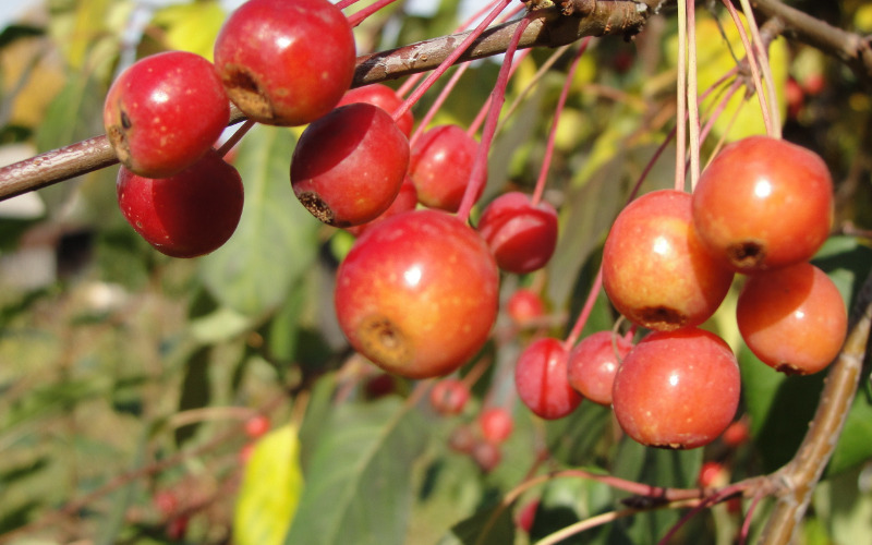 Плоды весят обычно около 15 г, в диаметре составляют всего 5 см. Они вкусные и сочные, идеально подходят для варенья из-за своих небольших размеров. Всего в мире около сотни совершенно разных сортов яблонь-ранеток.