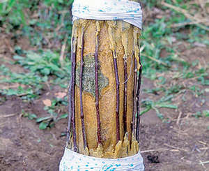 Место прививки туго обвязывается полиэтиленовой пленкой для защиты от попадания внутрь вредителей и от пересыхания. Поверх обвязки, а также в полости между привоем и подвоем наносится садовый вар, предохраняющий место прививки от влаги.