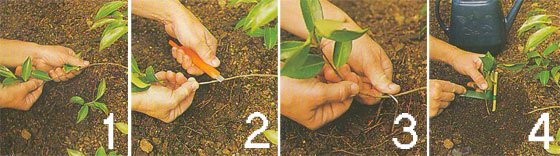 У черенков следует сделать нижний срез косым под нижним узлом. Срезая верхушку над узлом, оставьте пенек в 2-3 см. Готовые зеленые черенки высаживаются в ящик или в отдельные пластиковые стаканчики. Нужно создать им небольшое притемнение, которое убирается после того, как черенки заметно тронулись в рост.